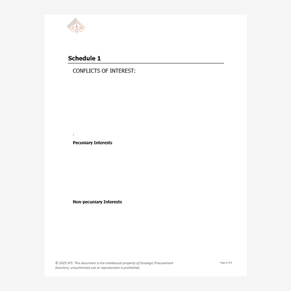 6 page document template, used by RFT/RFQ/EOI Evaluation Comittee, ensuring Probity and fairness by disclosing any personal, financial, or professional interests that could improperly influence an individual’s responsibilities or decision-making in a given role.