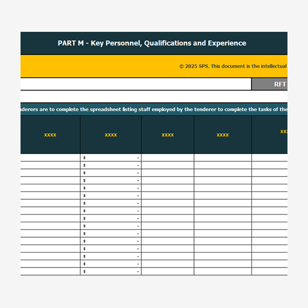 Document template, is a structured section within a tender response where proponents list the individuals assigned to deliver the project—detailing their roles, qualifications, experience, and availability—to demonstrate capability, alignment with project requirements, and resource readiness
